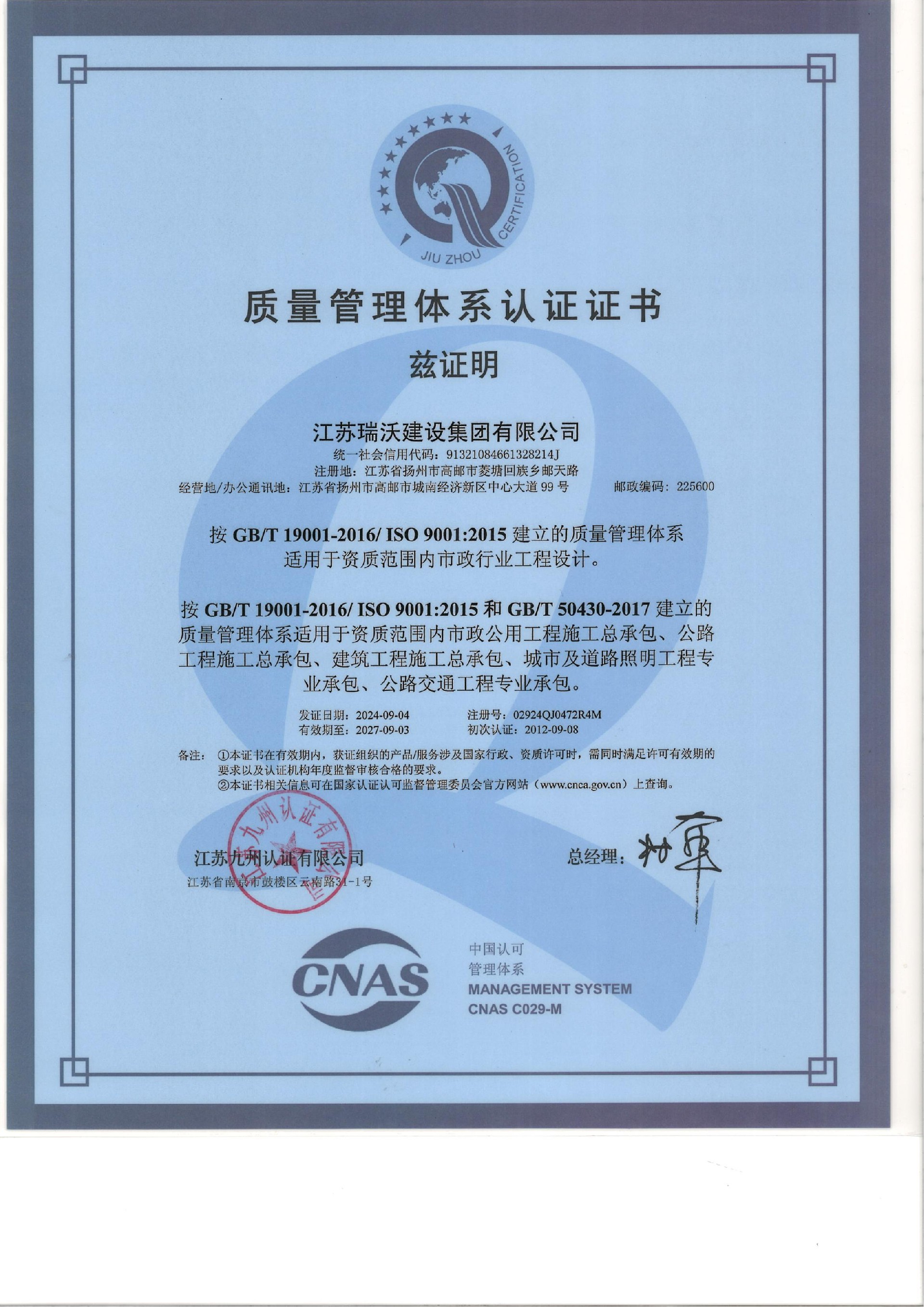 公司現擁有市政公用工程施工總承包特級,工程設計市政行業甲級,公路工程施工總承包一級、建筑工程施工總承包二級等資質。目前公司下設弘瑞、天瑞、金遠、盛瑞等全資子公司,擁有江蘇欣瑞交通工程檢測有限公司,成立了揚州、南京、上海、北京、深圳、貴州、重慶、云南、青海、西藏、內蒙、大慶、寧夏、湖南、海外等分公司。公司按照現代企業管理模式,實行董事會負責制,下設董事會、監事會、董事長室、總經理室、副總經理室、總工室、綜合管理部、財務核算中心、市場發展部、工程管理部等部門。